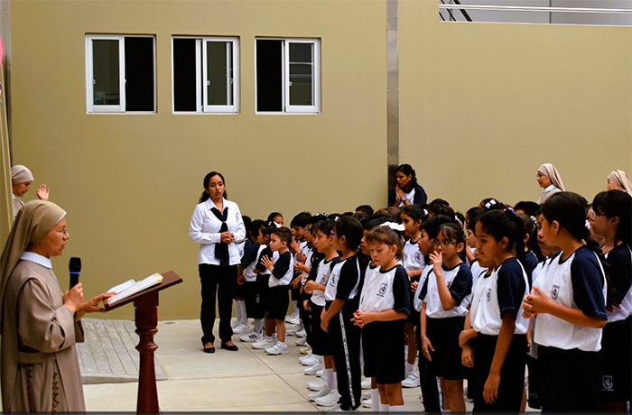 Las Hijas de Santa María del Corazón de Jesús, animadas por la visión de fe y la confianza en Dios de nuestra Madre Fundadora, Madre María de Jesús Velarde, comenzamos nuestra misión en este colegio el año 2018. (Historia) Actualmente, es uno de los 11 colegios Madre Velarde.